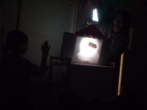 3月7日(木)に誕生会を行いました。今回の保育士からのプレゼントは・・『影絵』です♪保育園にある子ども達に馴染みのある物をクイズにしてみました!出題した物は糸に吊るしていたのでくるくる動いていたのですが、じっくりと観察して「分かった!きしゃ!くるま!」と見え方は子ども達によって様々で、私たち保育士も楽しみながら行いました。目を丸くして見てる子ども達が可愛く、とても癒されました♪